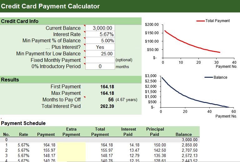 This Credit Card Payment Calculator Excel template is a practical tool for individuals looking to take control of their credit card debt. It allows you to enter your balance, interest rate, and payment amount to calculate how long it will take to pay off your debt and how much interest you’ll pay over time.
