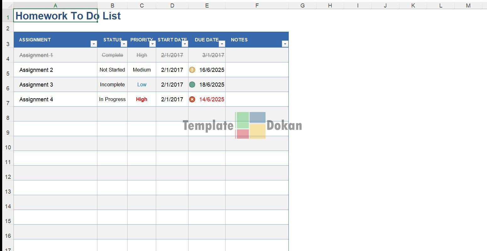 Download this professionally designed homework to do list to streamline your tasks in Excel.