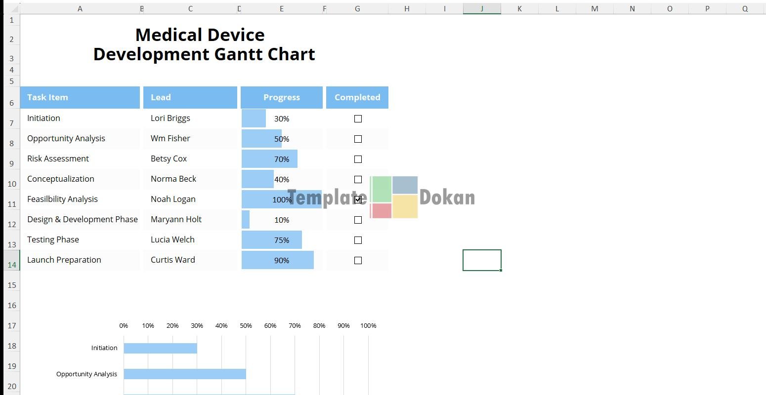 The Medical Device Development Gantt Chart is a fully customizable and editable Excel template. Perfect for professionals, students, or personal use, this template helps you stay organized and efficient. Easily printable and compatible with all modern versions of Excel.
