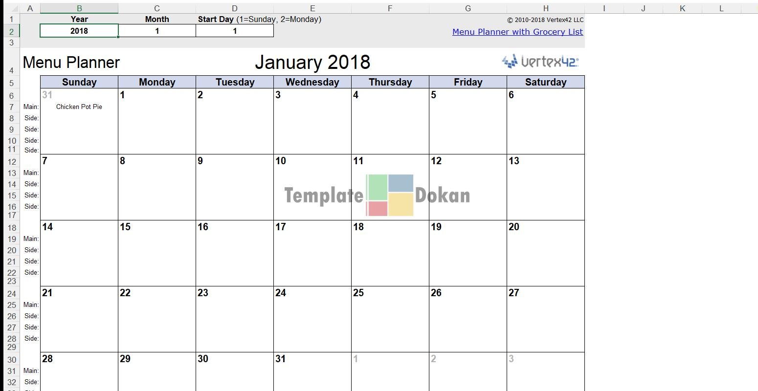 Download this professionally designed menu planner with grocery list to streamline your tasks in Excel.