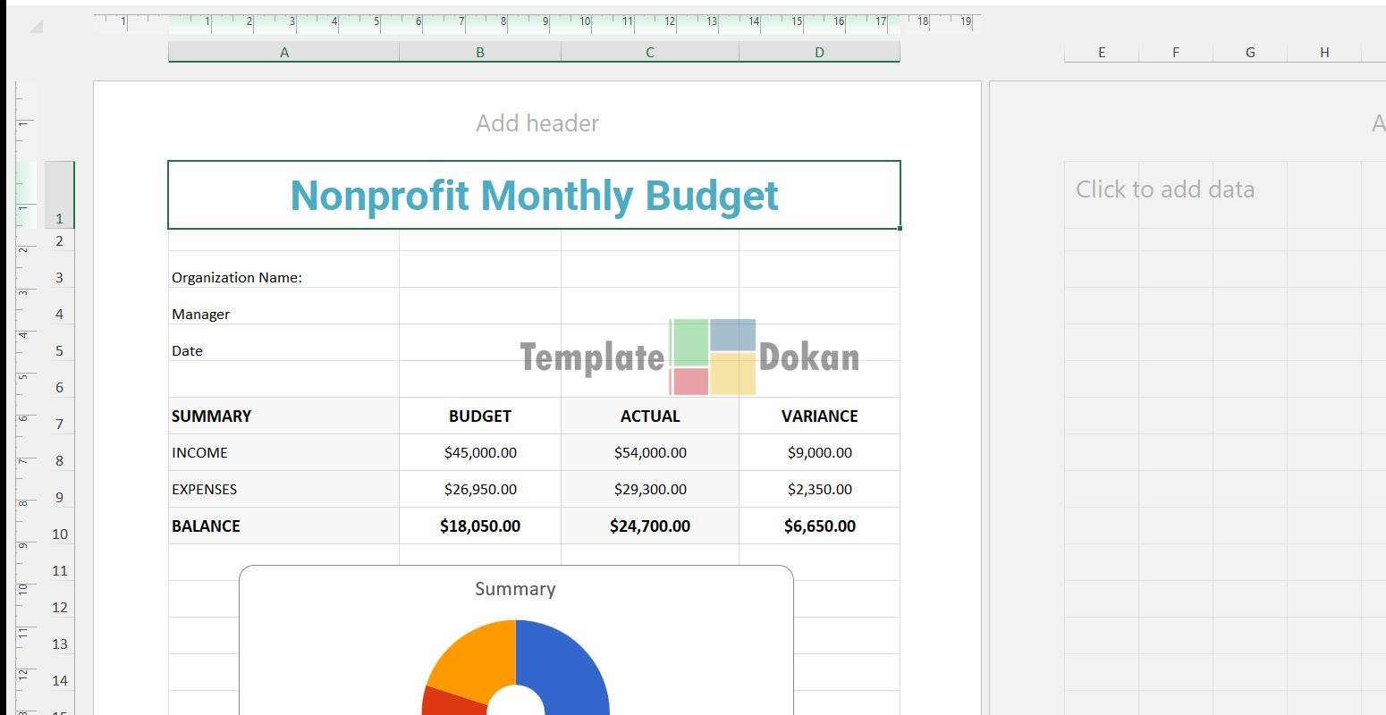 Download this professionally designed nonprofit monthly budget template a to streamline your tasks in Excel.