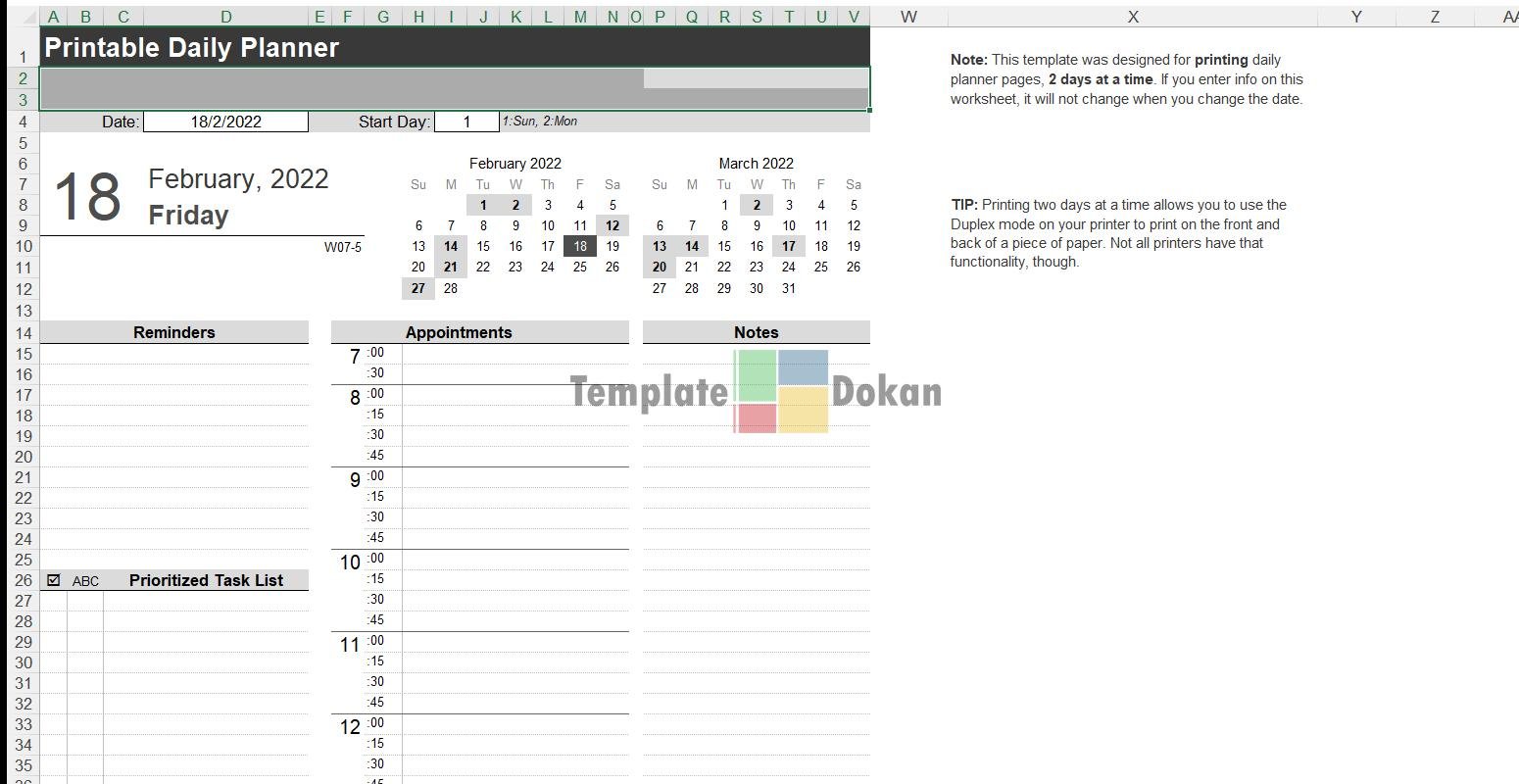 The Printable Daily Calendar is a fully customizable and editable Excel template. Perfect for professionals, students, or personal use, this template helps you stay organized and efficient. Easily printable and compatible with all modern versions of Excel.