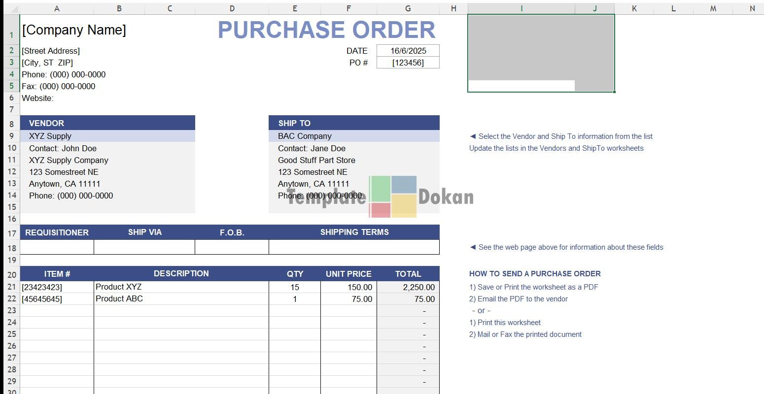 The Purchase Order Vendor List is a fully customizable and editable Excel template. Perfect for professionals, students, or personal use, this template helps you stay organized and efficient. Easily printable and compatible with all modern versions of Excel.