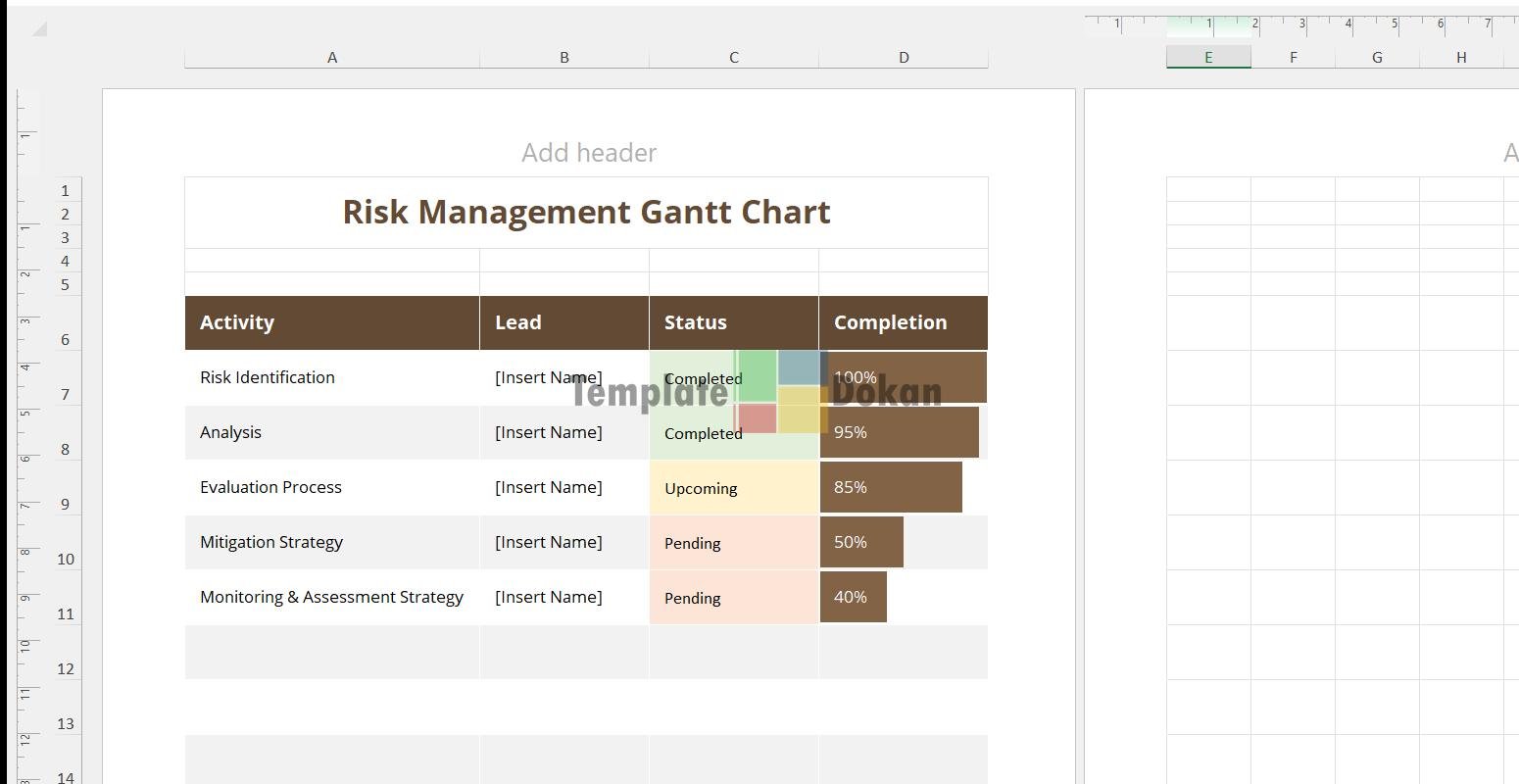 The Risk Management Gantt Chart is a fully customizable and editable Excel template. Perfect for professionals, students, or personal use, this template helps you stay organized and efficient. Easily printable and compatible with all modern versions of Excel.