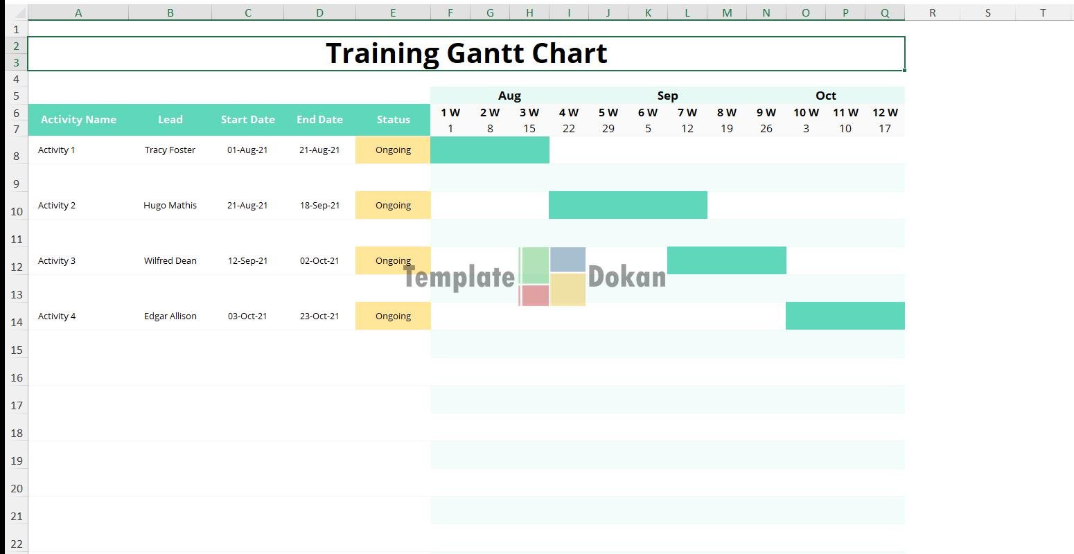 The Sample Training Gantt Chart is a fully customizable and editable Excel template. Perfect for professionals, students, or personal use, this template helps you stay organized and efficient. Easily printable and compatible with all modern versions of Excel.