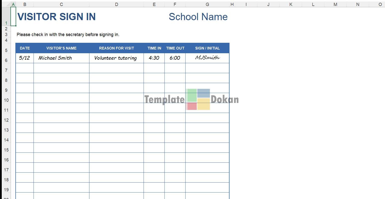 Download this professionally designed school visitor sign in to streamline your tasks in Excel.