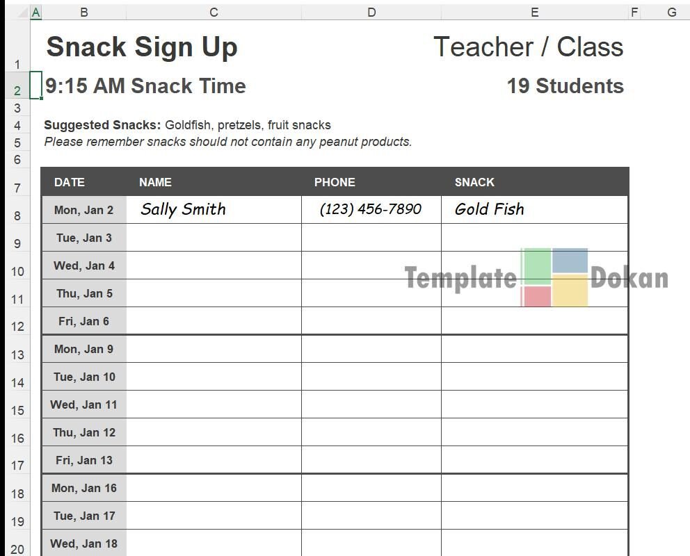 The Snack Schedule Class is a fully customizable and editable Excel template. Perfect for professionals, students, or personal use, this template helps you stay organized and efficient. Easily printable and compatible with all modern versions of Excel.