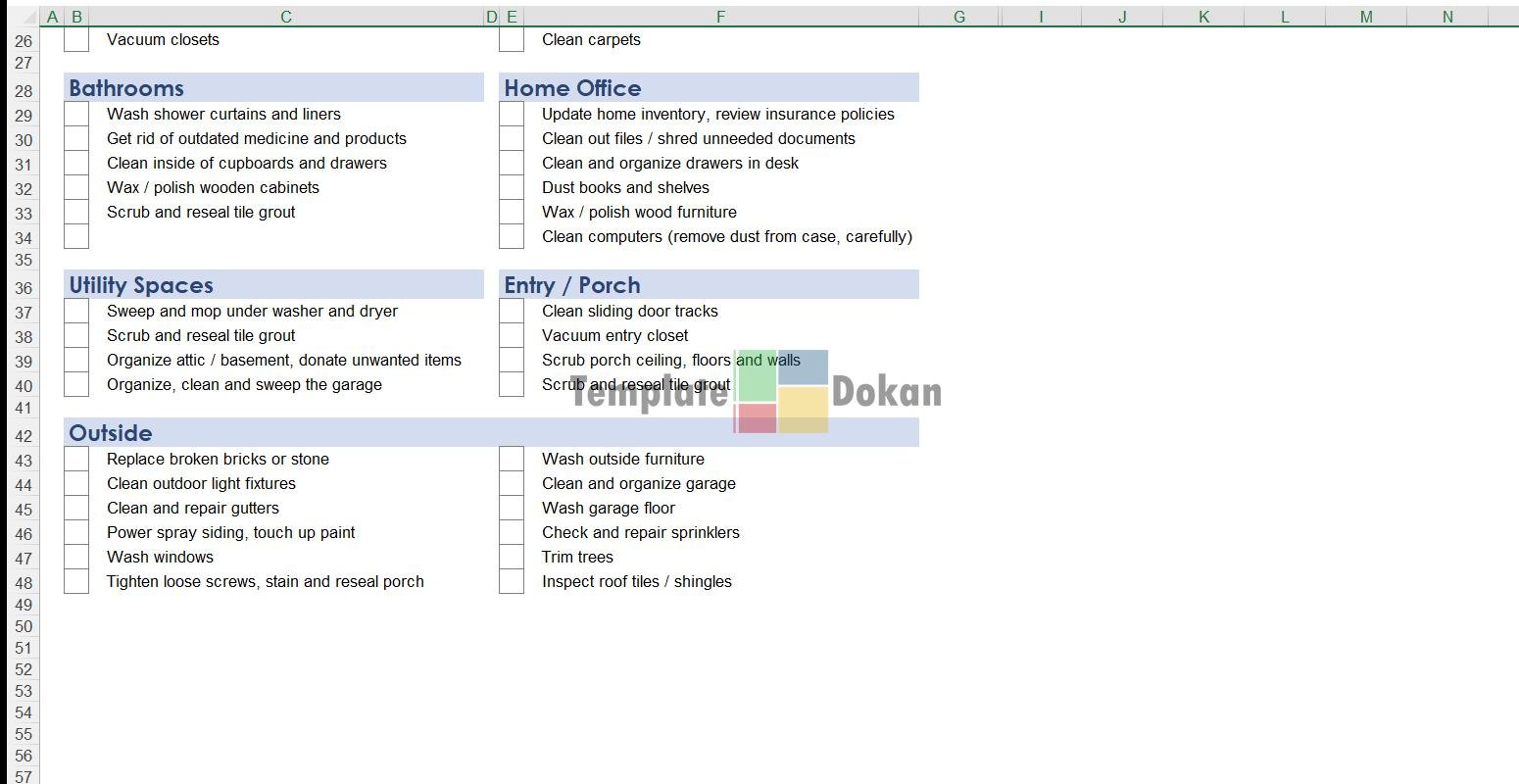 The Spring Cleaning Checklist is a fully customizable and editable Excel template. Perfect for professionals, students, or personal use, this template helps you stay organized and efficient. Easily printable and compatible with all modern versions of Excel.