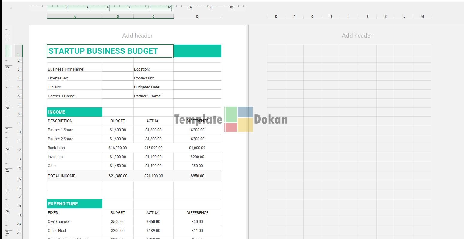 Startup Business Budget Template A4